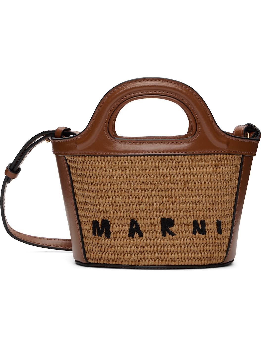 TROPICALIA MICRO BAG IN BROWN LEATHER AND RAFFIA