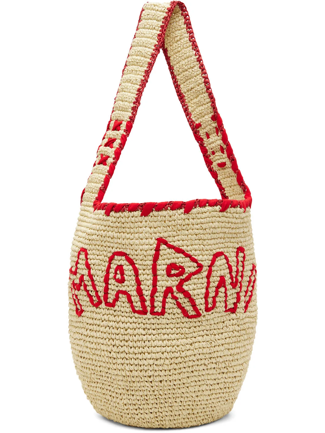 Woven tote. · Whipstitching at shoulder strap · Logo embroidered at face · Contrast stitching in red · H17" x W19" x D7" Supplier color: Natural/Red Textile. Made in India 252379F049004