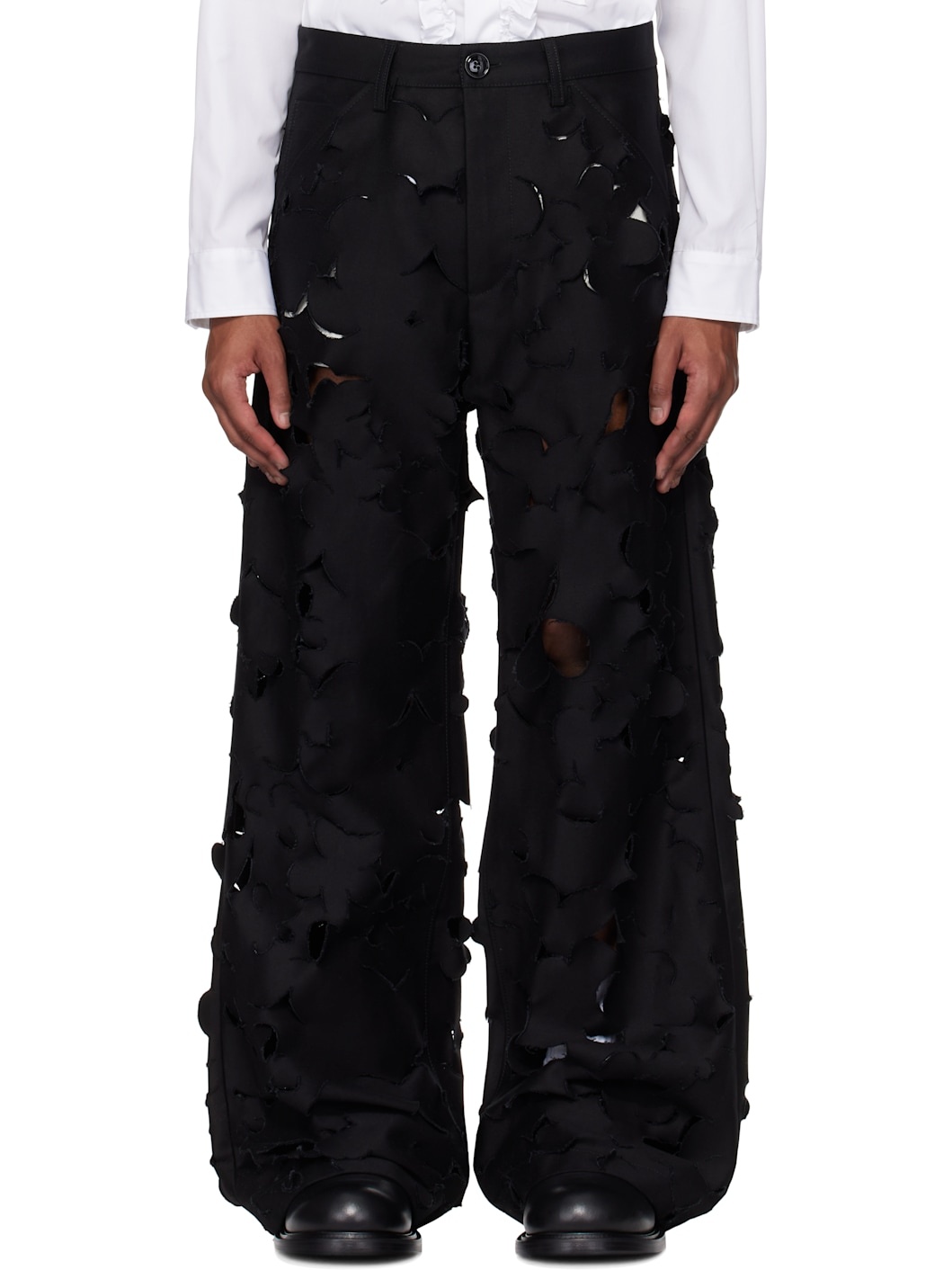 Cotton twill cargo pants. Cutout floral pattern throughout. · Belt loops · Five-pocket styling · Zip fly · Hammer loop at outseam · Darts at back · Patch pockets at back leg Supplier color: Black Body: 100% cotton. Lining: 100% cotton. Made in Italy 251379M188001