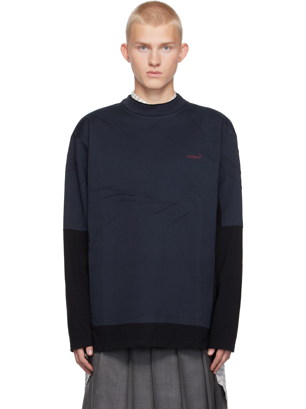 Wrinkled cotton jersey T-shirt. · Layered construction · Rib-knit crewneck · Hand-stitched logo at chest Supplier color: Black