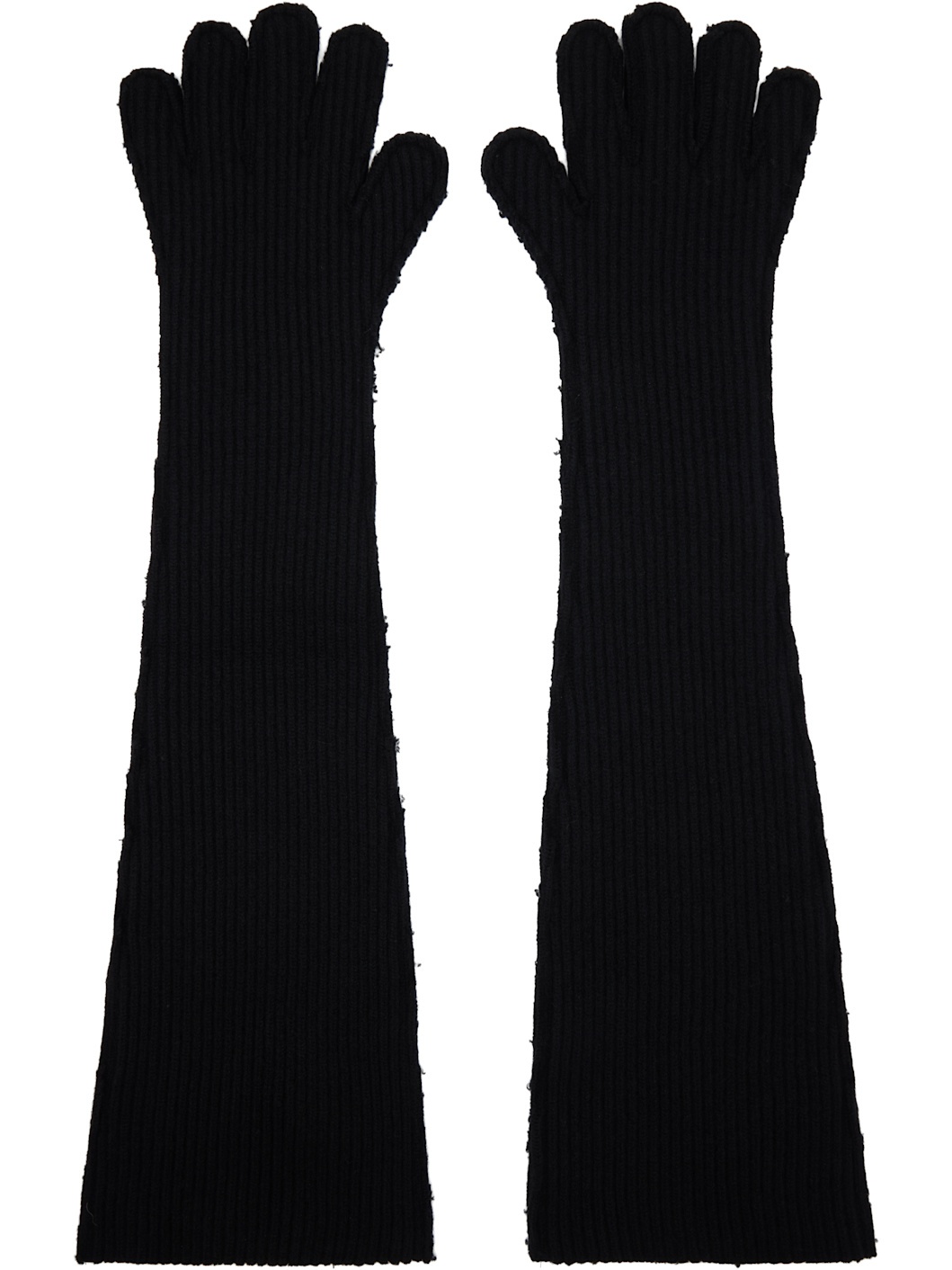 Rib-knit virgin wool gloves in black. Pinched seams throughout. Supplier color: Black