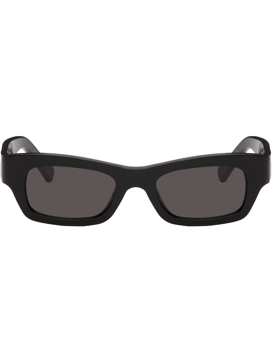 Handcrafted rectangular acetate-frame sunglasses in black. · Gray Carl Zeiss lenses · Integrated nose pads · Inset logo hardware at temples · Includes pouch · Size: 50.20 140 Part of the Marni x RETROSUPERFUTURE collaboration. Supplier color: Black Acetate. Made in Italy 252379M134034