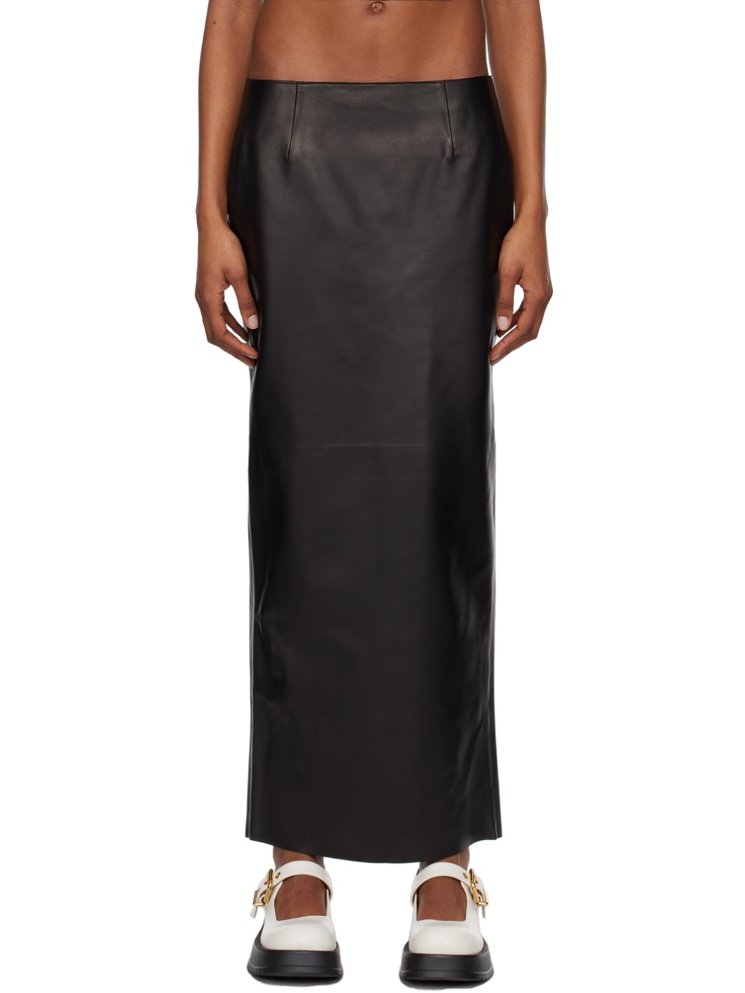 Buffed sheepskin skirt. · Low-rise · Darts at front and back waist · Zip closure at back · Slit at back hem · Unlined Supplier color: Black 100% sheepskin. Made in Italy 241379F093002