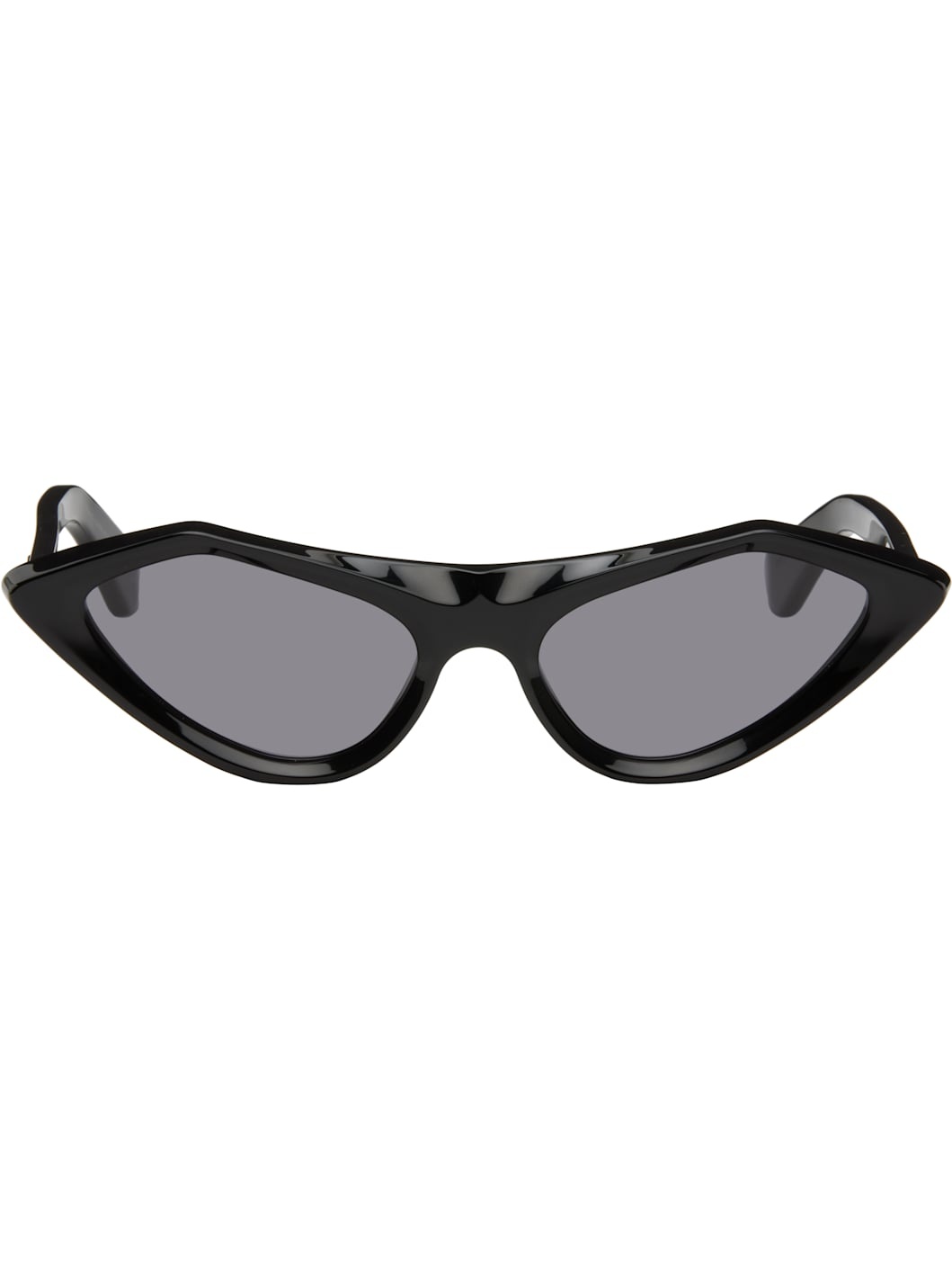 Handcrafted cat-eye acetate-frame sunglasses in black. · Gray lenses · Integrated nose pads · Logo hardware at temples · Includes pouch · Size: 56.18 145 Supplier color: Black Acetate. Made in Italy 252379M134013