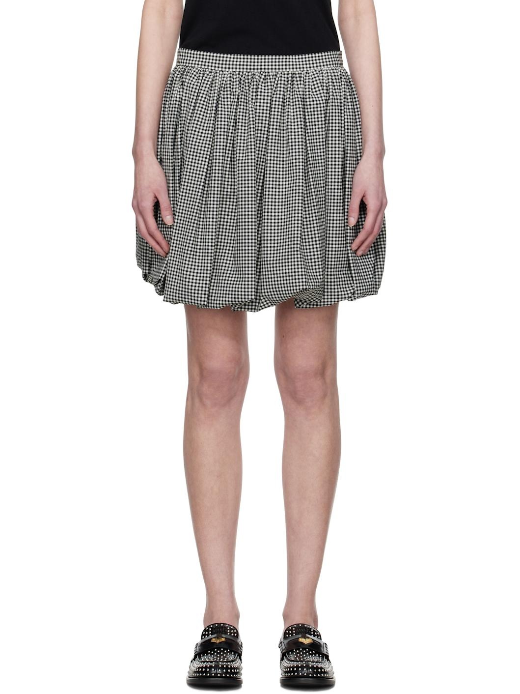 Plain-woven stretch polyester- and virgin wool-blend miniskirt. Gingham pattern throughout. · Gathering at waistband · Bubble hem · Zip closure at back · Full taffeta lining Supplier color: Black Body: 53% polyester, 43% virgin wool, 4% elastane. Lining: 100% polyamide. Made in Italy 251379F090001