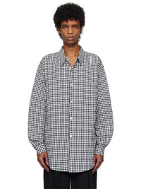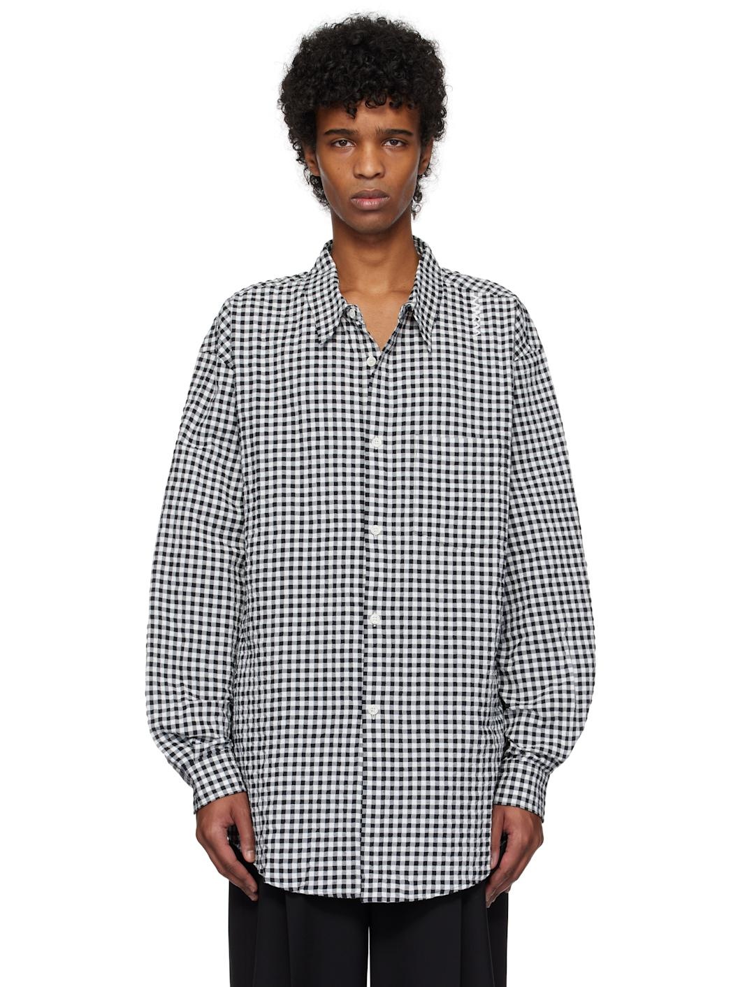 Nylon- and cotton-blend seersucker shirt. Gingham pattern throughout. · Spread collar · Button closure · Patch pocket at chest · Shirttail hem · Hand-embroidered logo at shoulder · Dropped shoulders · Pleated single-button barrel cuffs · Box pleat at back yoke Supplier color: Black 51% polyamide, 49% cotton. Made in Romania 251379M192010