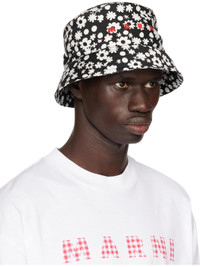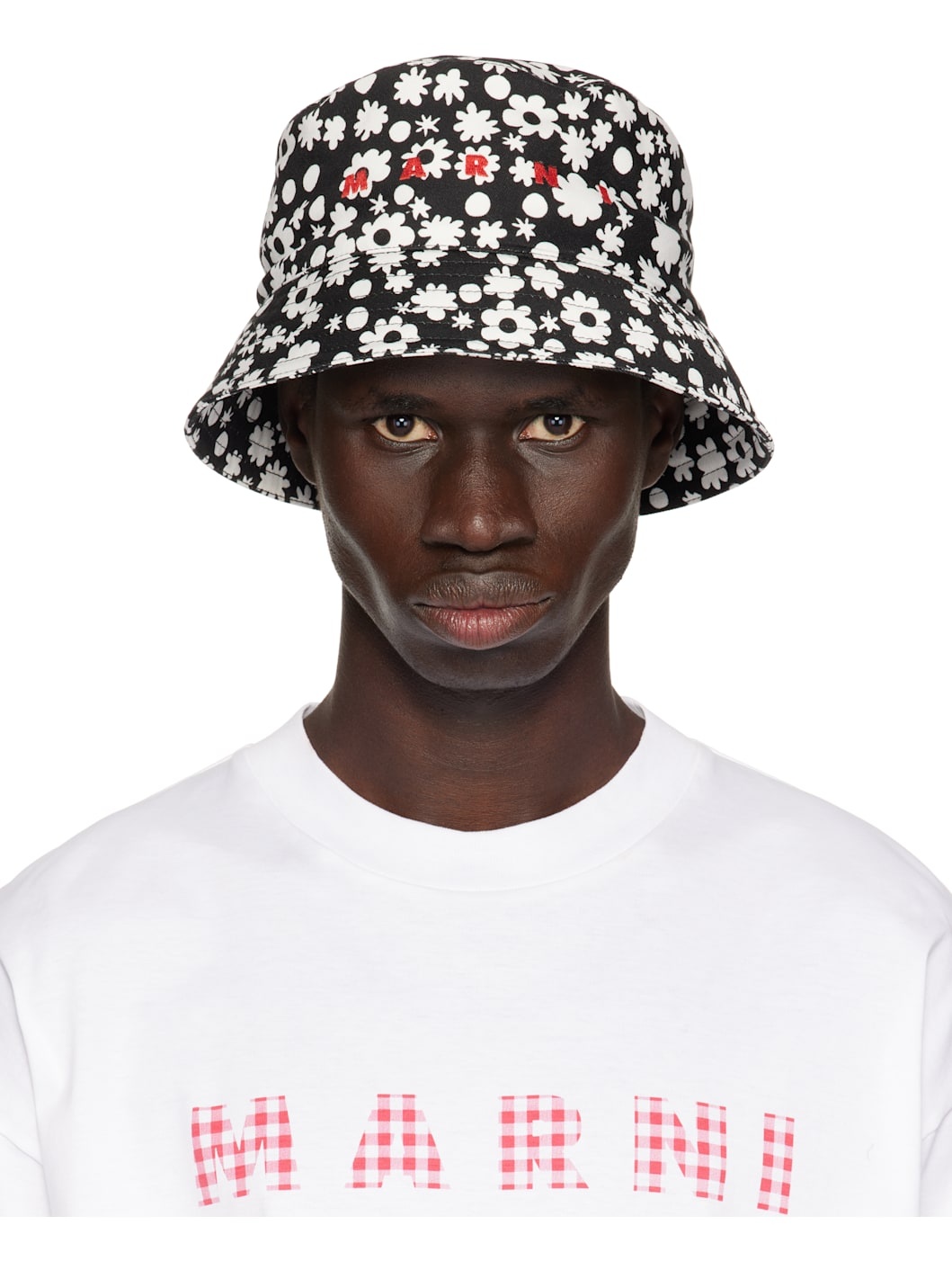 Cotton twill bucket hat in black and white. · Floral pattern printed throughout · Logo embroidered at face · Quilted brim · Grosgrain browband Supplier color: Black 100% cotton. Made in Italy 251379M140002