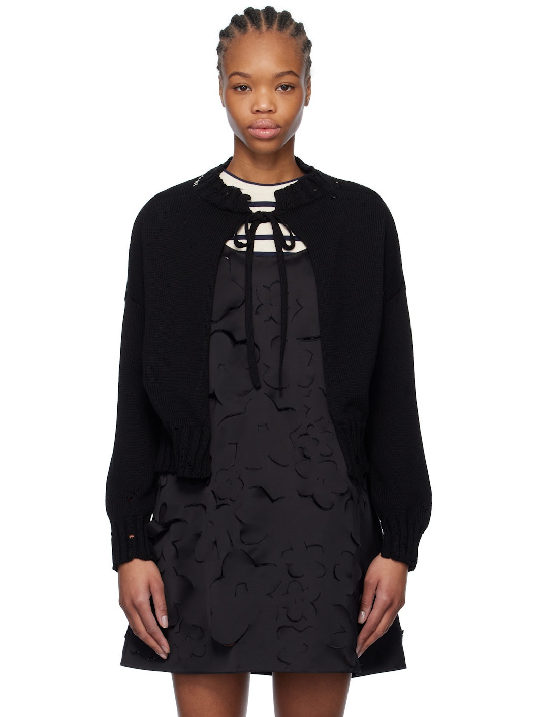 Knit cotton sweater. Distressing throughout. · Rib-knit crewneck, hem, and cuffs · Hand-embroidered logo at collar · Vented side seams · Self-tie fastening at back collar · Open back Supplier color: Black 100% cotton. Made in Italy 251379F096002