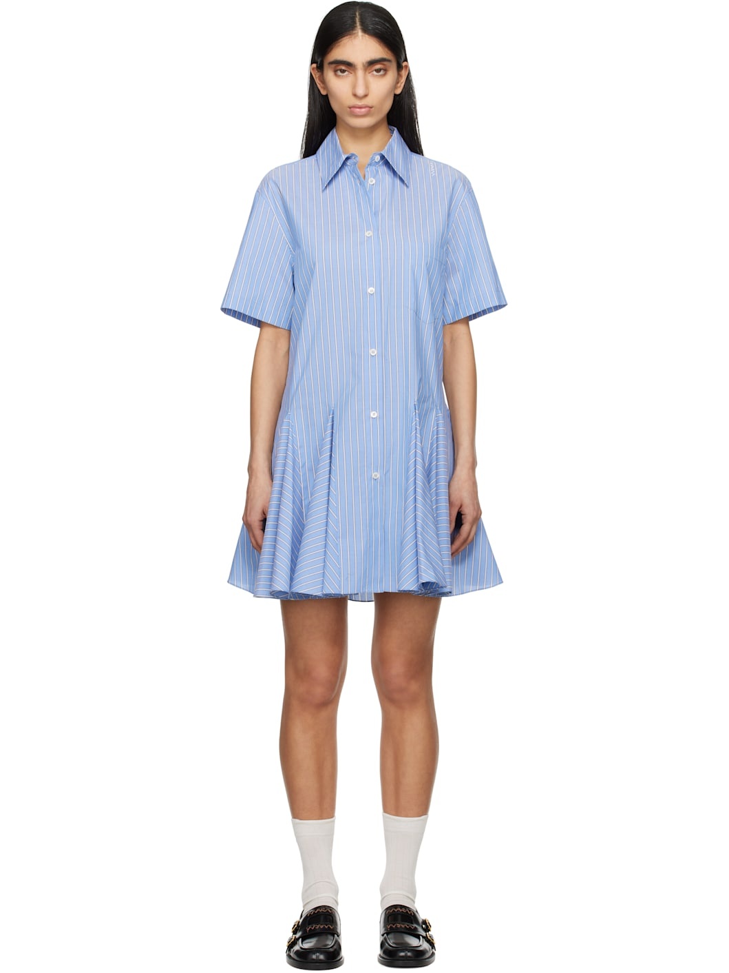 Yarn-dyed cotton poplin minidress. Stripes throughout. · Spread collar · Button closure · Patch pocket at chest · Godet panels at flared hem · Hand-embroidered logo at shoulder · Box pleat at yoke · Mother-of-pearl hardware Supplier color: Blue china 100% cotton. Made in Italy 251379F052003