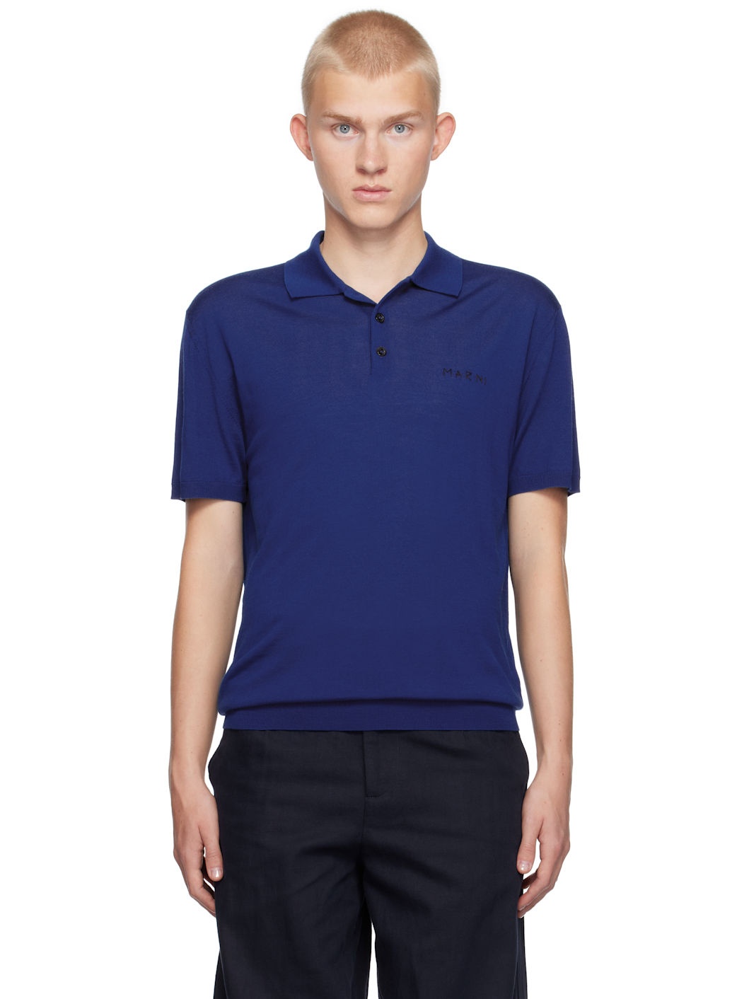 Knit virgin wool polo. · Spread collar · Two-button placket · Hand-stitched logo at chest · Rib-knit hem and cuffs Supplier color: Bluette