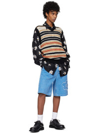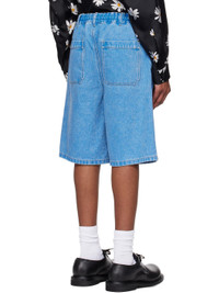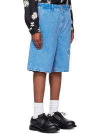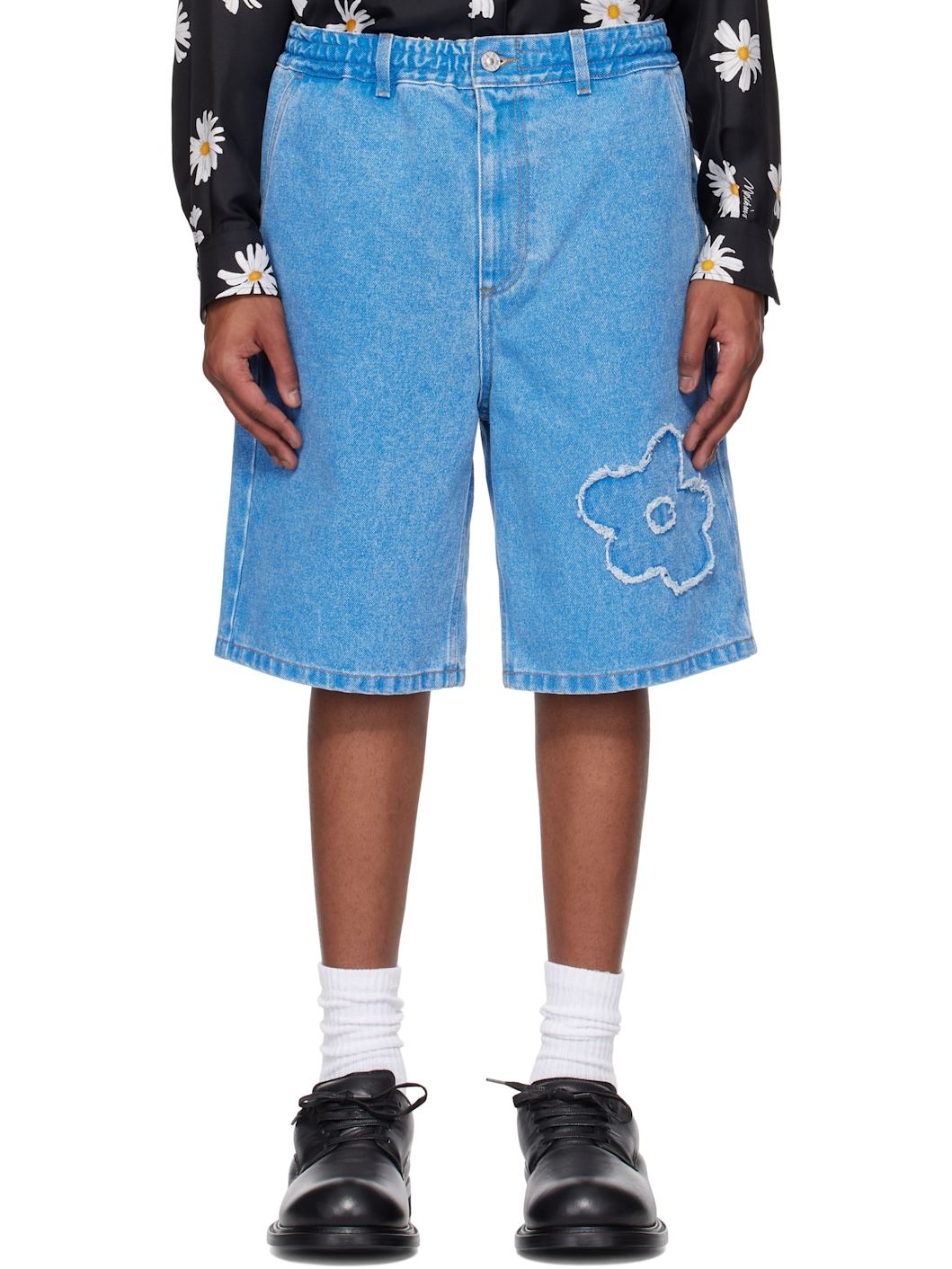 Loose-fit non-stretch organic cotton denim shorts. Fading throughout. · Concealed drawstring at elasticized waistband · Belt loops · Four-pocket styling · Zip fly · Floral applique at leg · Contrast stitching in tan Supplier color: Cobalt Body: 100% cotton. Lining: 65% polyester, 35% cotton. Made in Italy 251379M193005