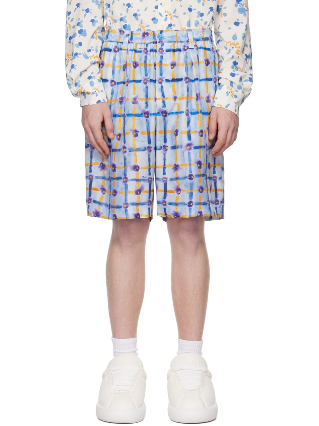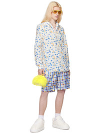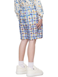 Silk habotai shorts. Graphic pattern and logos printed throughout. · Drawstring at elasticized waistband · Belt loops · Four-pocket styling · Button-fly · Pleated front · Horn hardware Supplier color: Light blue 100% silk. Made in Italy 241379M193008