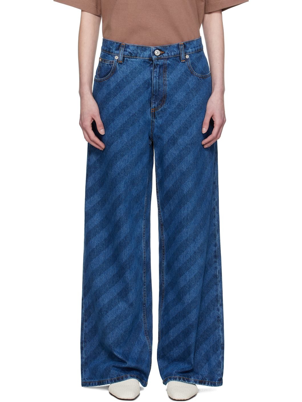 Loose-fit and wide-leg non-stretch denim jeans. Stripes throughout. · Mid-rise · Belt loops · Five-pocket styling · Zip-fly · Logo hardware at outseam · Logo patch at back waistband · Logo-engraved silver-tone hardware · Contrast stitching in tan Supplier color: Blue kyanite Body: 100% cotton. Lining: 65% polyester, 35% cotton. Made in Italy 251379F069003