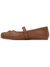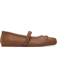 Grained leather Mary Jane-style ballerina flats in brown. · Square toe · Hand-embossed bow accent at vamp · Logo-embossed elasticized strap · Logo embossed at leather footbed · Buffed leather lining · Leather sole with rubber injection Supplier color: Wood Upper: leather. Sole: leather, rubber. Made in Italy 251379F118007