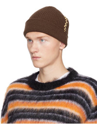 Rib-knit virgin wool- and cashmere-blend beanie in brown. · Logo embroidered at side seam · Rolled brim Supplier color: Moca