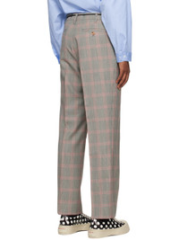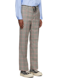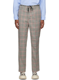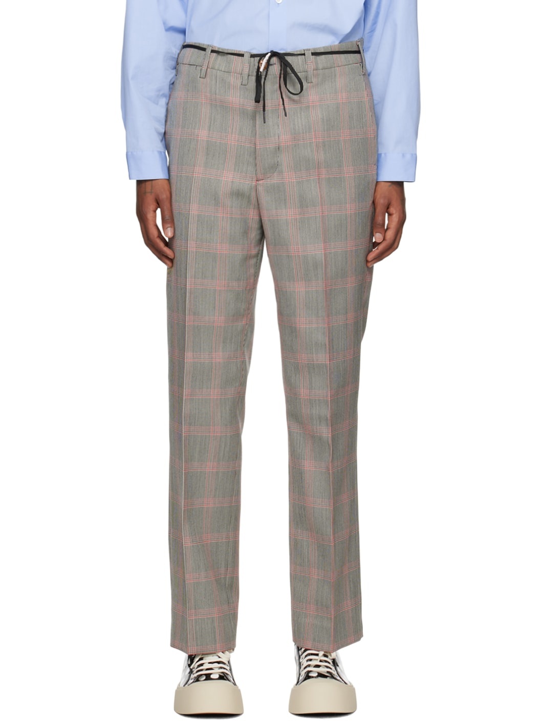 Straight-leg virgin wool- and polyester-blend twill trousers. Check pattern printed throughout. · Shoelace-style drawstring at waistband · Belt loops · Four-pocket styling · Button-fly · Creased legs · Partially lined Supplier color: Orange/Red Body: 57% virgin wool, 43% polyester. Lining: 69% cotton, 31% polyamide. Made in Italy 241379M191009