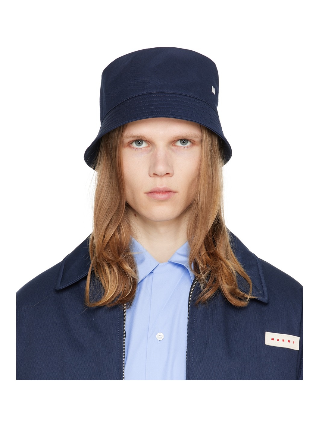 Organic cotton gabardine bucket hat in navy. · Logo embroidered at face · Quilted brim · Organic cotton barathea lining Supplier color: Ink 100% organic cotton. Made in Italy 241379M140011