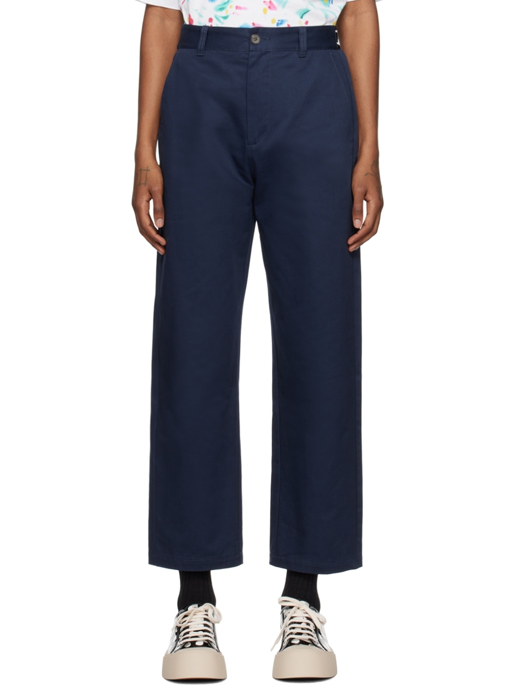 Non-stretch organic cotton twill trousers. · Belt loops · Four-pocket styling · Zip-fly · Logo-woven elasticized waistband at back Supplier color: Ink 100% cotton. Made in Italy 241379M191007