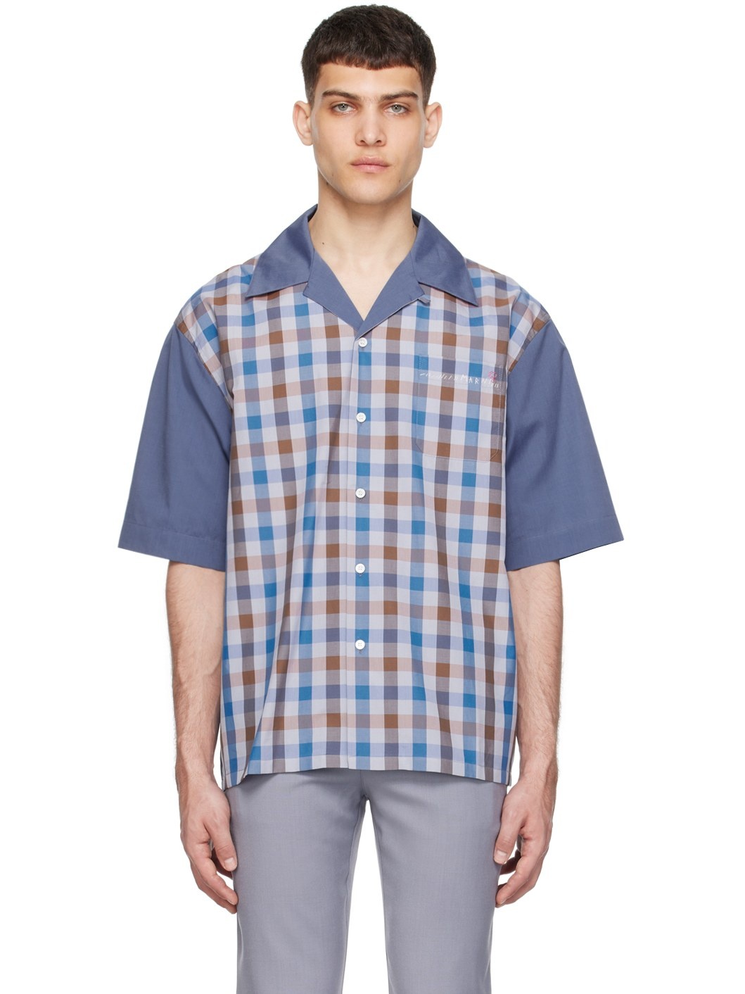 Organic cotton poplin shirt. · Paneled construction · Open spread collar · Button closure · Check pattern at front · Logo embroidered at patch pocket Supplier color: Mercury 100% organic cotton. Made in Romania 241379M192060