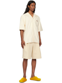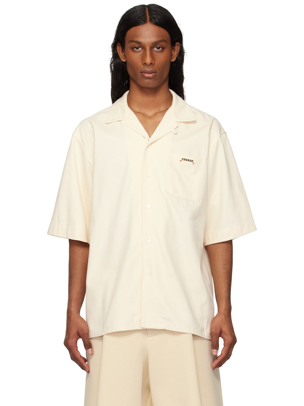 Slub non-stretch denim shirt. · Open spread collar · Button closure · Logo plaque at patch pocket · Vented side seams Supplier color: Bone 100% cotton. Made in Italy 251379M192068