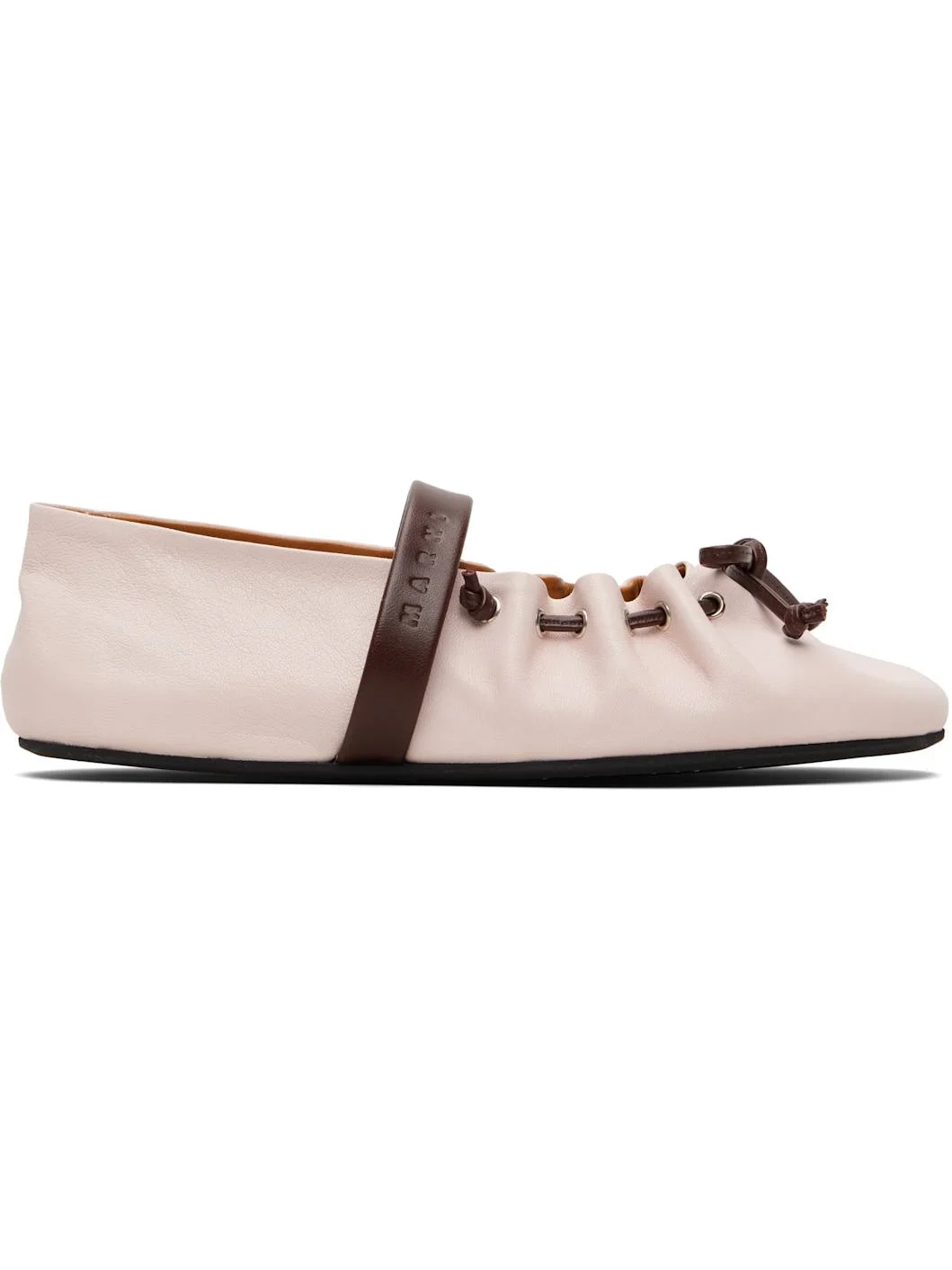 Grained sheepskin Mary Jane-style ballerina flats. · Lace-up closure · Logo-embossed elasticized strap at vamp · Buffed goatskin lining · Rubber sole Supplier color: Pink/Dark brown Upper: sheepskin. Sole: rubber. Made in Italy 261379F118003