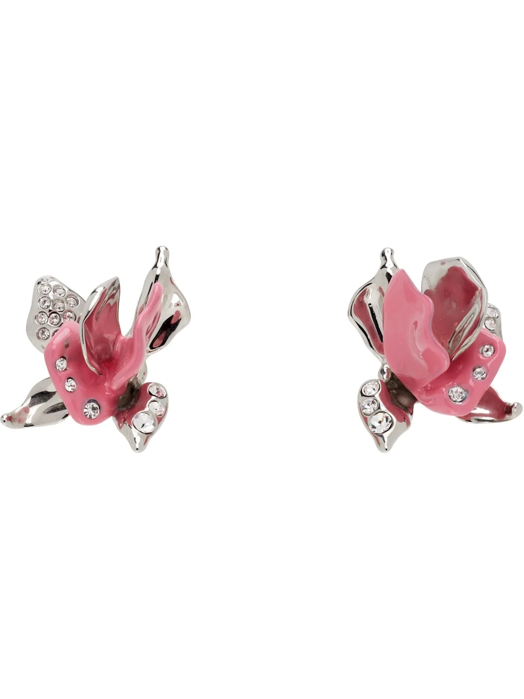 Pair of stud earrings in silver-tone brass. · Enameled graphic with glass stones at face · Post-stud fastening · H1" x W1.25" Supplier color: Macaroon Brass, glass. Made in Italy 252379F022009