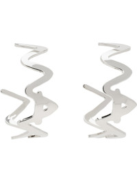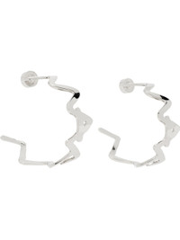 Pair of sculptural open hoop earrings in silver-tone brass. Logo detailing throughout. · Post-stud fastening · D2" Supplier color: Palladium Brass. Made in Italy 251379F022005