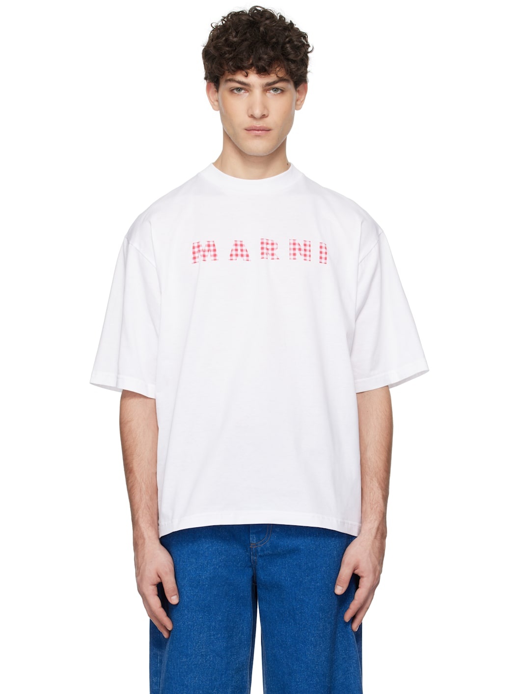 CREW NECK T-SHIRT WITH CHECKED MARNI LOGO
