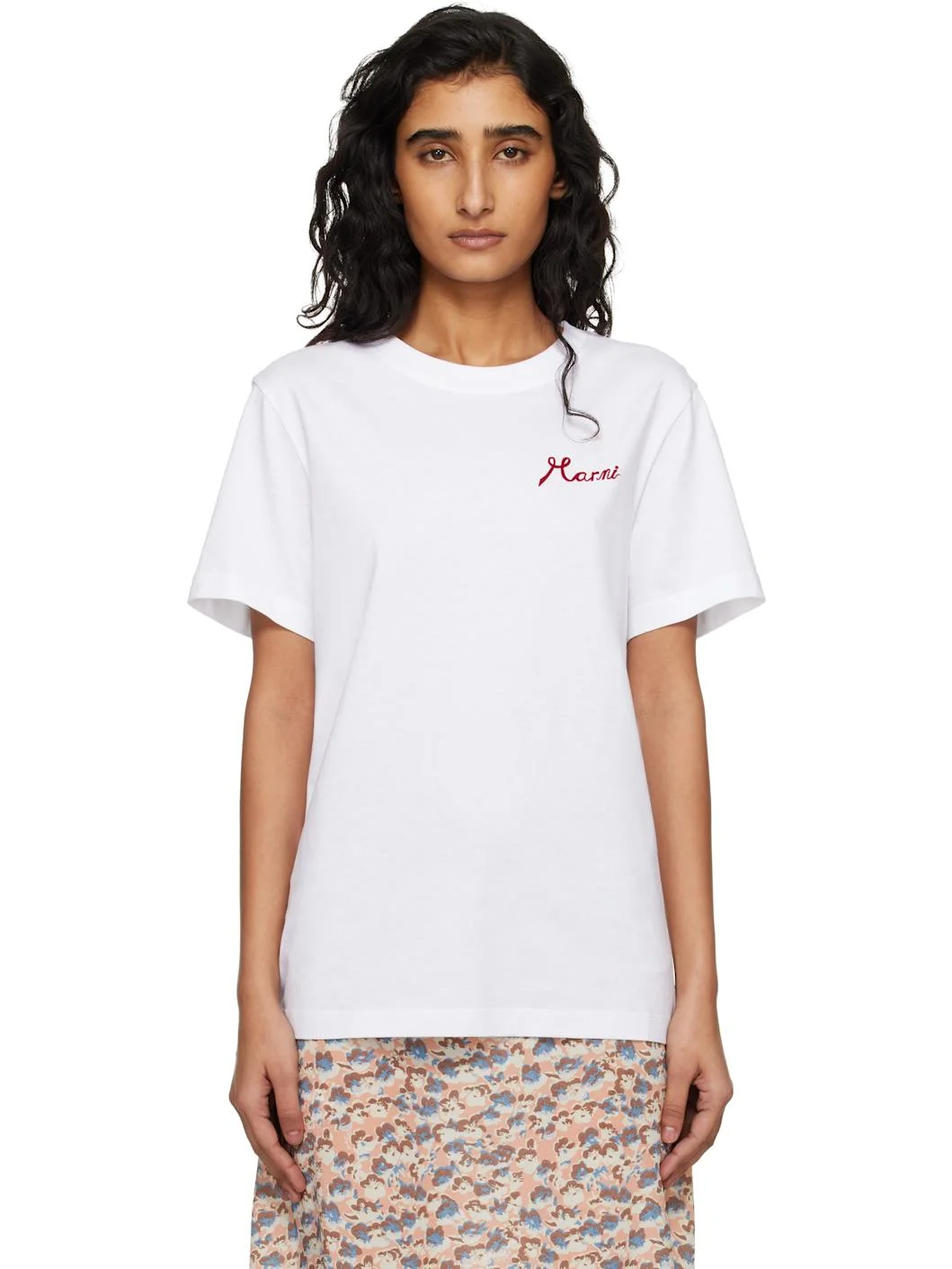 White Cotton Flocked Marni Logo T-shirt