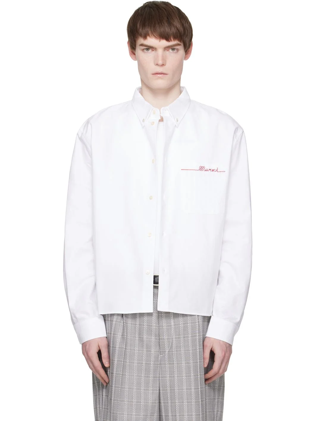 Organic cotton oxford cloth shirt. · Spread collar · Button closure · Patch pocket with jacquard stripes and embroidered logo · Shirttail hem · Barrel cuffs · Box pleat at back yoke Supplier color: Lily White 100% cotton. Made in Romania 261379M192006