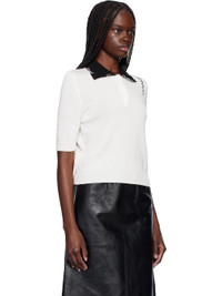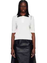Knit cotton polo. · Rib-knit spread collar, hem, and cuffs · Two-button placket · Hand-stitched logo at shoulder · Contrast stitching in white and black Supplier color: Natural white 100% cotton. Made in Romania 251379F108005