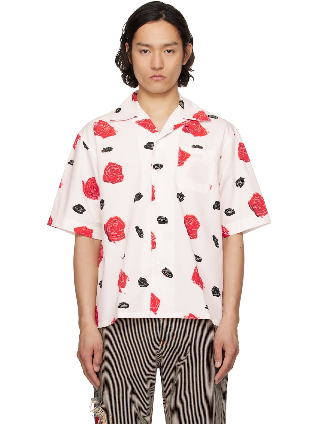 Cotton poplin shirt. Floral pattern printed throughout. · Open spread collar · Button closure · Patch pocket at chest · Mother-of-pearl hardware Supplier color: Lily white 100% cotton. Made in Italy 251379M192064