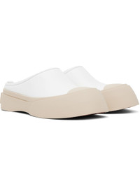 Buffed nappa calfskin slip-on loafers in white. · Rubber cap toe · Logo embossed at padded calfskin footbed · Buffed calfskin lining · Rubberized logo patch at heel · Treaded rubber platform sole · Platform: H2" Supplier color: Lily white Upper: calfskin. Sole: rubber. Made in Italy 251379M231000
