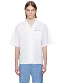 Boxy-fit cotton poplin shirt. · Open spread collar · Button closure · Patch pocket and printed logo at chest · Mother-of-pearl hardware Supplier color: Lilywhite 100% cotton. Made in Turkey 251379M192028