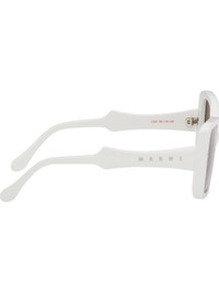 Handcrafted square acetate-frame sunglasses. · Brown lenses · Integrated nose pads · Inset logo at temples · Includes pouch · Size: 56.19 145 Part of the Marni x RETROSUPERFUTURE collaboration. Supplier color: White Acetate. Made in Italy 261379M134020