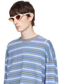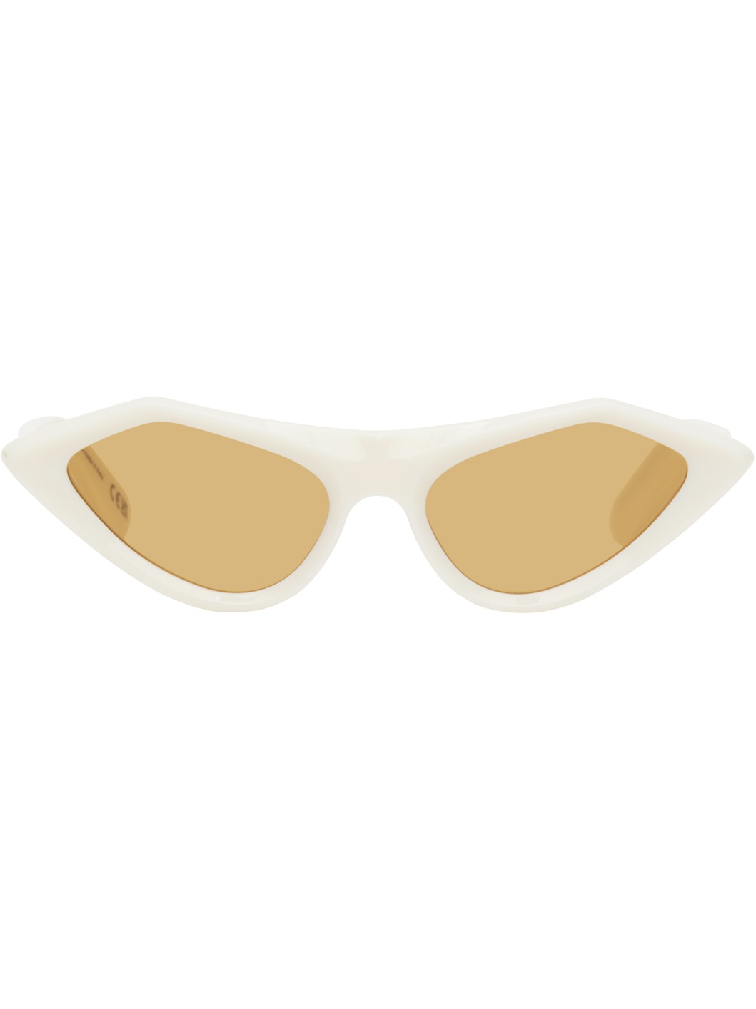 Handcrafted cat-eye acetate-frame sunglasses in white. · Orange lenses · 100% UV protection, category 2 · Integrated nose pads · Gold-tone logo hardware at temples · Includes pouch · Size: 56.18 145 Supplier color: Cream Acetate. Made in Italy 252379M134011