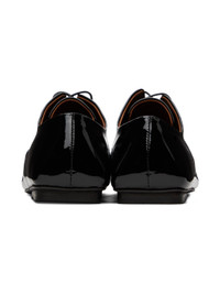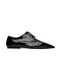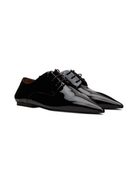 Patent leather derbys in black. · Pointed toe · Lace-up closure · Suede and buffed leather lining · Stacked leather heel with rubber injection · Leather sole Supplier color: Black Upper: leather. Sole: leather, rubber. Made in Italy 232349F120022