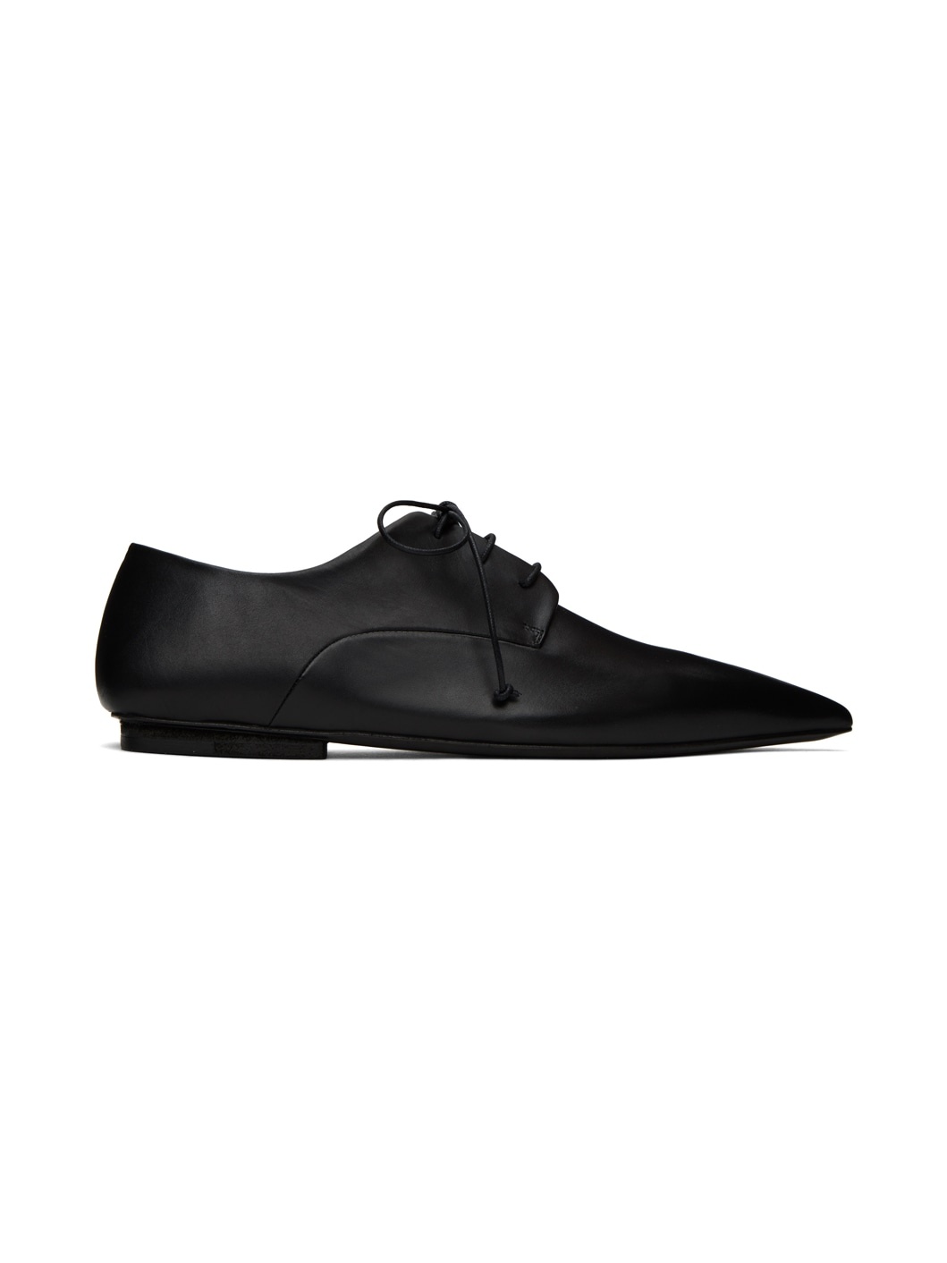 Buffed leather derbys in black. · Pointed toe · Lace-up closure · Stacked leather heel with rubber injection · Leather sole Supplier color: Black Upper: leather. Sole: leather, rubber. Made in Italy 241349F120008
