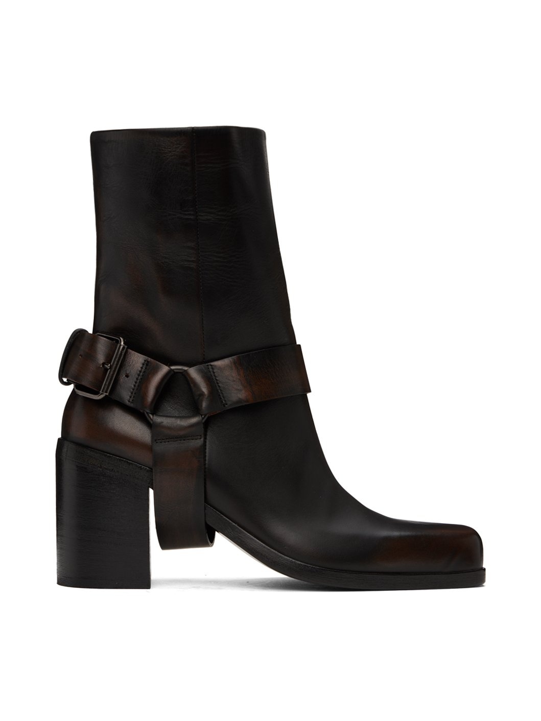 Ankle-high waxed leather boots in black. · Fading throughout · Square toe · Detachable stirrup-style pin-buckle ankle strap · Concealed pull-loop at collar · Grained leather lining · Stacked leather block heel with rubber injection · Polished leather sole · Heel: H3" Supplier color: Black Upper: leather. Sole: leather, rubber. Made in Italy 242349F113017