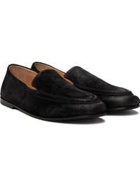 Calfskin suede loafers. · Moc toe · Grained calfskin and suede lining · Stacked heel with rubber injection · Calfskin sole Supplier color: Black Calfskin. Made in Italy 261349M231020