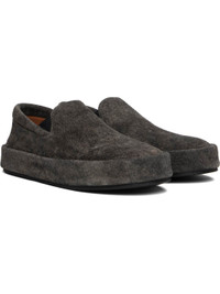Low-top suede slip-on sneakers. · Padded collar · Elasticized gusset at sides · Buffed leather lining · Rubber sole Supplier color: Black Upper: leather. Sole: rubber. Made in Italy 252349M237015