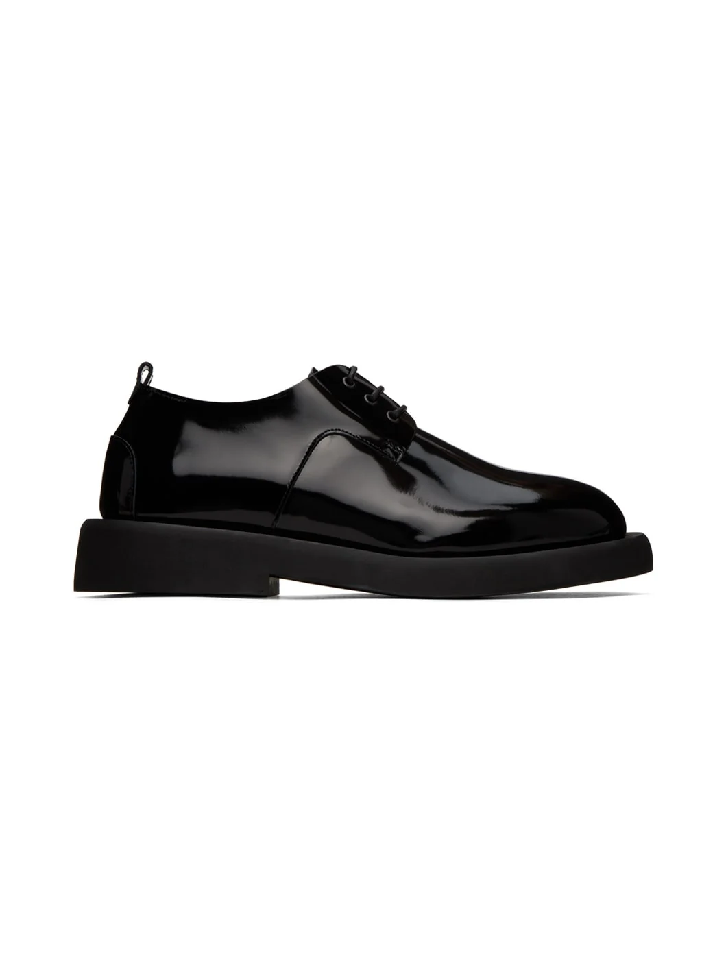Patent leather derbys in black. · Lace-up closure · Leather pull-loop at heel collar · Rubber sole · Heel: H1.5 in Part of the Marsèll Gomme® collection Supplier color: Black