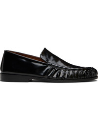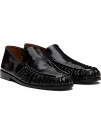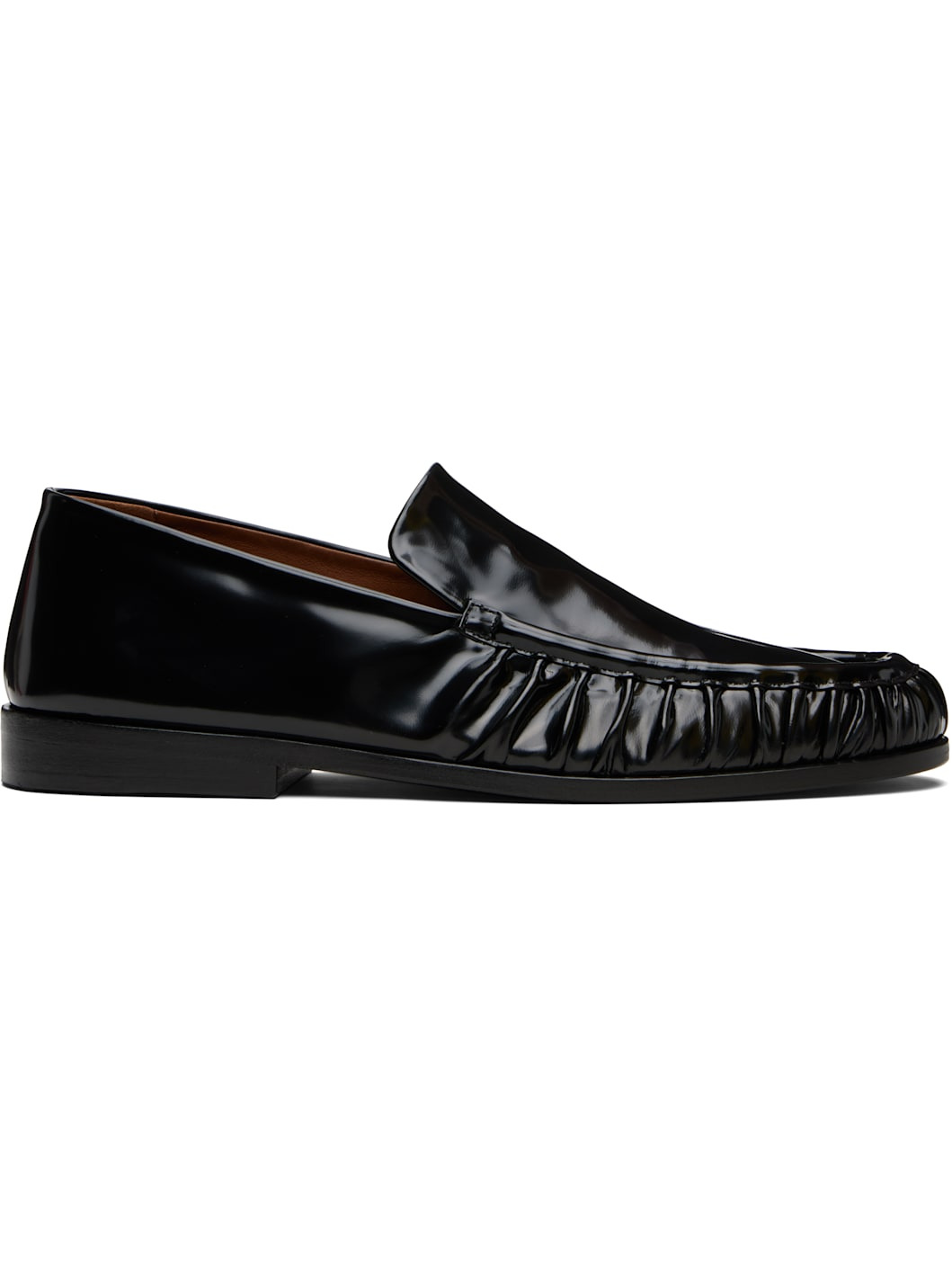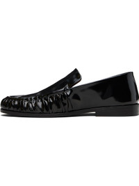 Patent leather loafers. · Gathering at moc toe · Buffed leather lining · Stacked leather heel with rubber injection · Leather sole Supplier color: Black Upper: leather. Sole: leather, rubber. Made in Italy 252349M231027