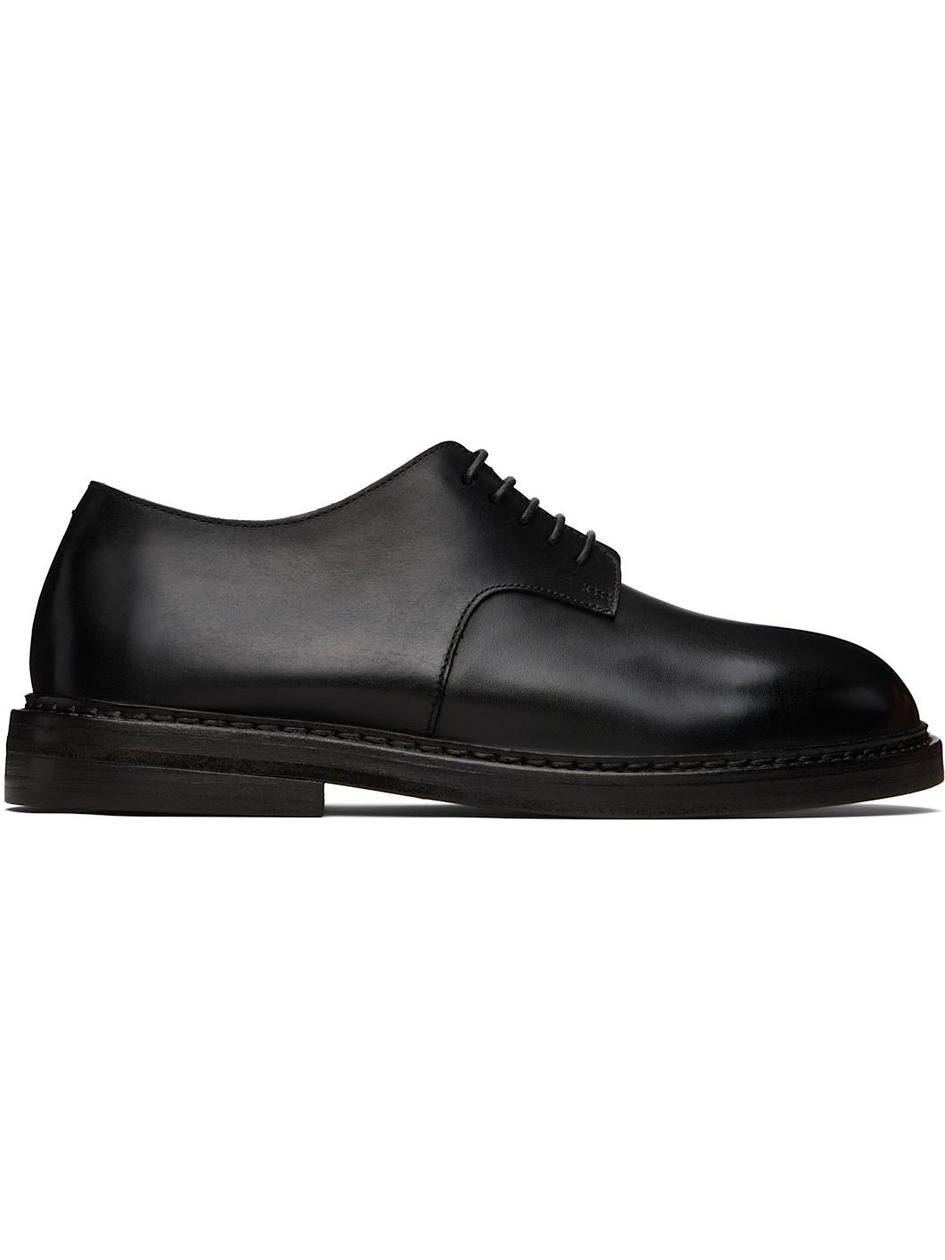 Buffed leather derbys in black. · Lace-up closure · Topstitching at welt · Stacked leather heel with rubber injection · Leather sole Supplier color: Black Upper: leather. Sole: leather, rubber. Made in Italy 252349M225007