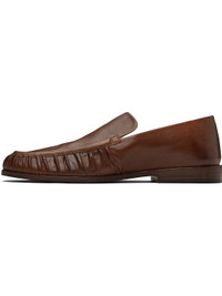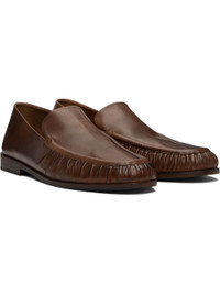 Handcrafted buffed leather loafers. · Gathering at moc toe · Stacked leather heel with rubber injection · Leather sole Supplier color: Brown Upper: leather. Sole: leather, rubber. Made in Italy 252349M231028