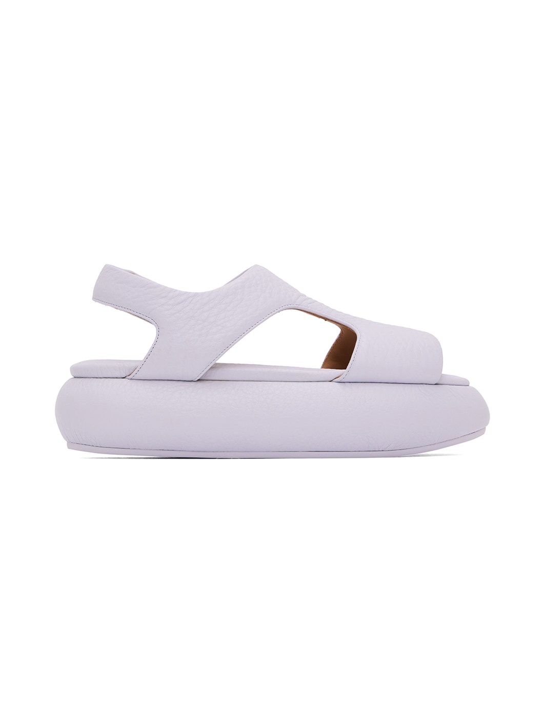 Grained leather sandals in purple. · Open round toe · Partially elasticized slingback strap · Covered platform midsole · Rubber outsole · Platform: H2 in Supplier color: Lavender Upper: leather. Sole: rubber. Made in Italy 231349F124008
