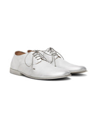 Crinkled leather derbys in silver tone. · Smudging throughout · Lace-up closure · Suede and grained leather lining · Stacked leather heel with rubber injection · Leather sole Supplier color: Silver Upper: leather. Sole: leather, rubber. Made in Italy 241349M225031