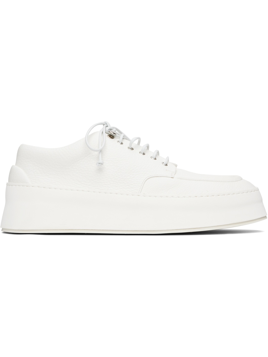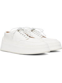 Grained leather derbys. · Moc toe · Lace-up closure · Padded tongue and collar · Buffed leather lining · Foam rubber platform midsole · Treaded rubber sole · Platform: H1.5" Supplier color: Optical white Upper: leather. Sole: rubber. Made in Italy 252349M237000