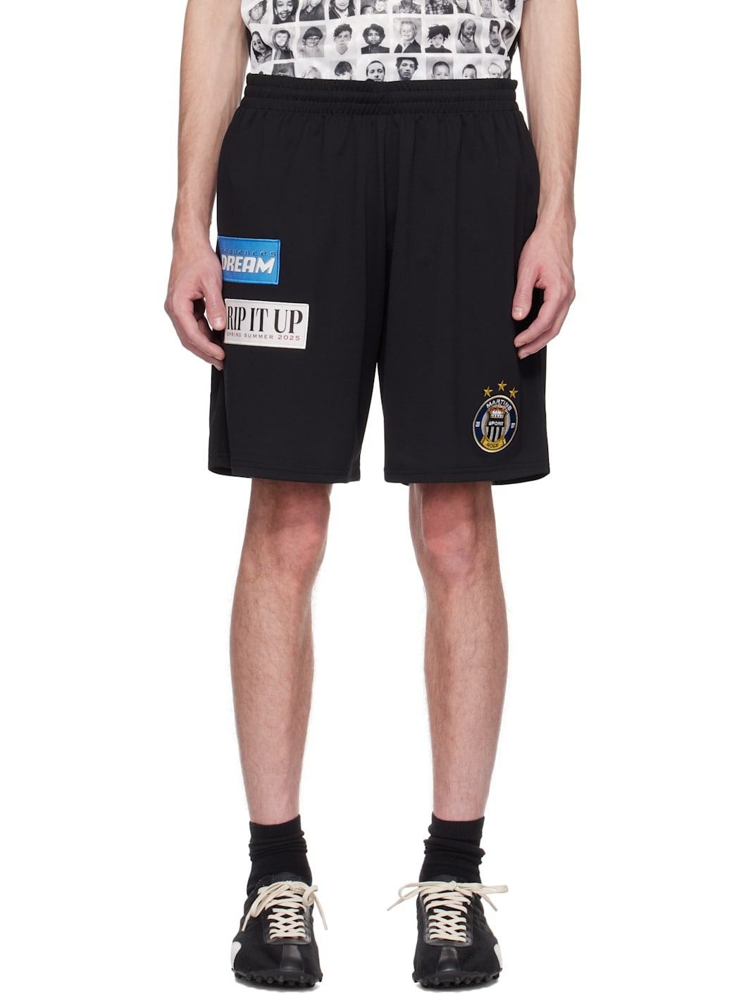 Polyester DryFit jersey shorts. · Embroidered logo and text patches throughout · Concealed drawstring at elasticized waistband Supplier color: Black 100% polyester. Made in Portugal 251892M193005