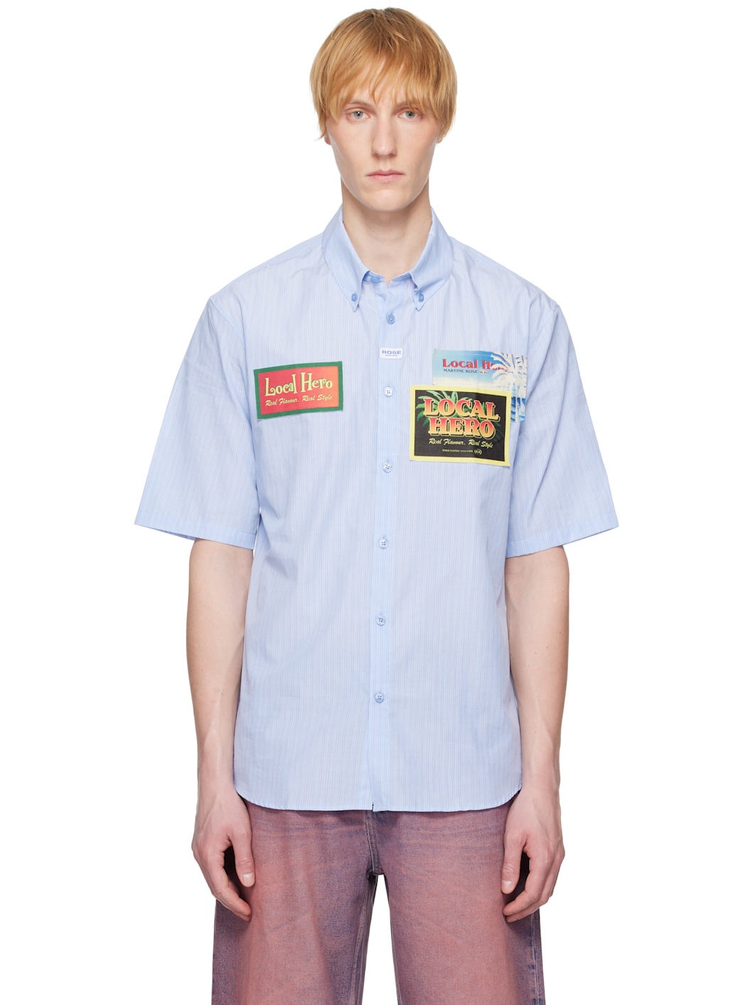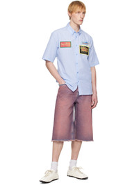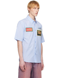 Cotton poplin shirt. Stripes throughout. · Button-down spread collar · Button closure · Logo patch at placket · Graphic patches at front · Shirttail hem Supplier color: Blue/White/Stripe 100% cotton. Made in Portugal 251892M192009